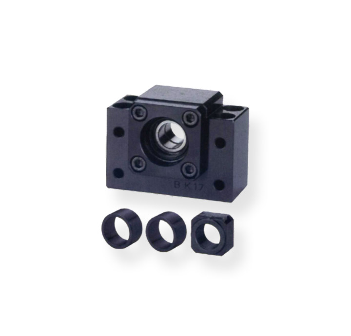 支撐座是連接絲桿和電機的軸承固定座,是對標(biāo)準(zhǔn)滾珠螺桿的軸端成品,預(yù)備了標(biāo)準(zhǔn)化的支撐單元EK、EF型,對一般滾珠螺桿預(yù)備了標(biāo)準(zhǔn)的支撐單元BK、BF型。